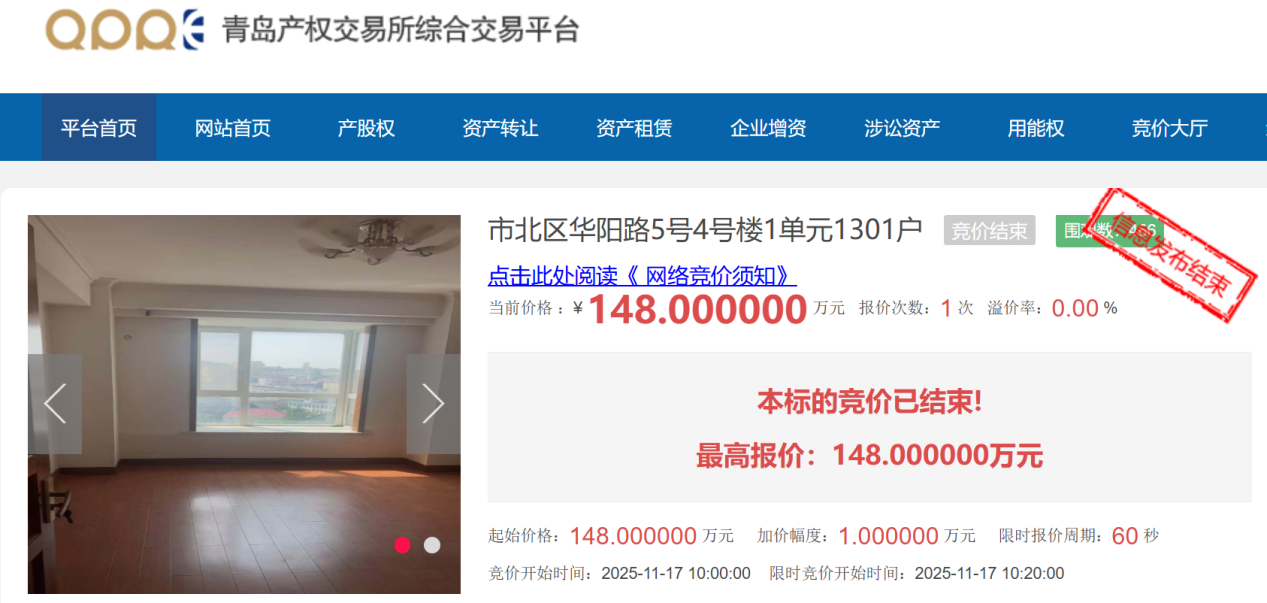 近日,市北區(qū)華陽(yáng)路5號(hào)4號(hào)樓1單元1301戶項(xiàng)目在青島產(chǎn)權(quán)交易所平臺(tái)順利成交,此次交易引入北京銀行向受讓方提供融資貸款,標(biāo)志著青島產(chǎn)權(quán)交易所又一“資產(chǎn)貸”業(yè)務(wù)成功落地。
